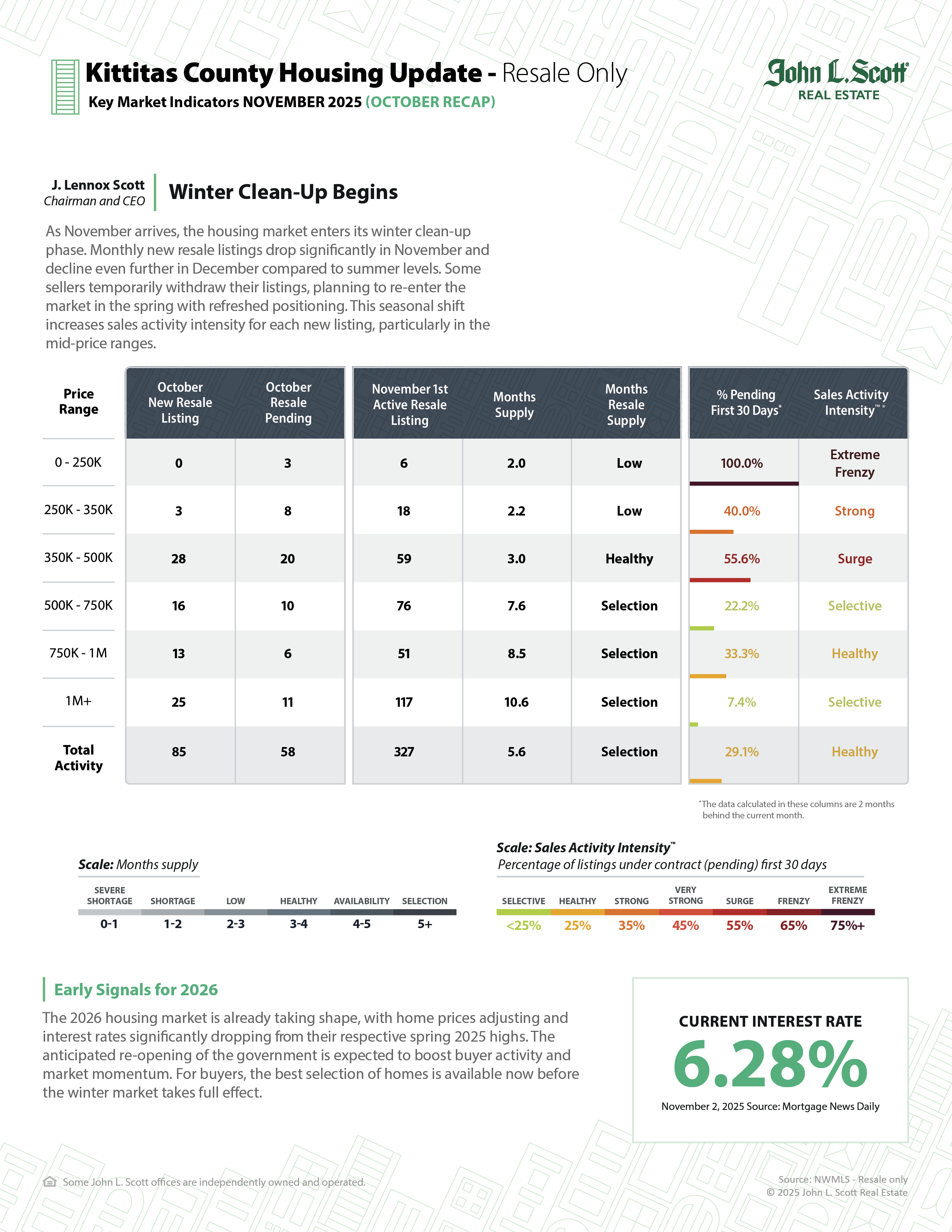 The 2026 housing market is already taking shape, with home prices adjusting and interest rates significantly dropping from their respective spring 2025 highs. The anticipated re-opening of the government is expected to boost buyer activity and market momentum. For buyers, the best selection of homes is available now before the winter market takes full effect.